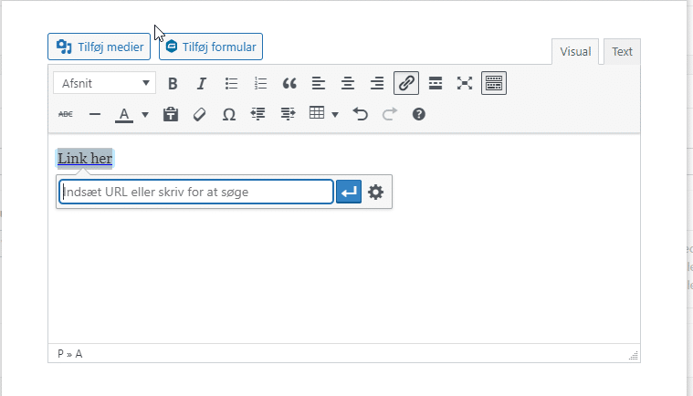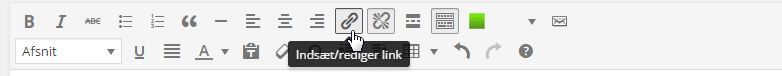 Den valgte tekst markeres med musen, og tryk herefter på Indsæt/rediger link.